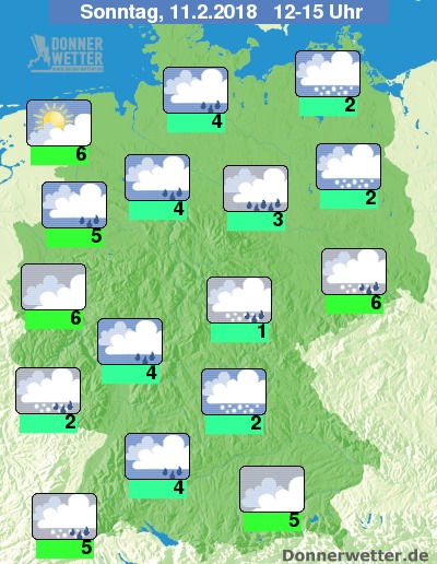 Heute Abend sind an der Nordsee Auflockerungen möglich, sonst hält sich die Bewölkung jedoch weitgehend dicht bewölkt, dabei fällt wiederholt Regen, Schneeregen oder Schnee. Die Temperatur liegt bei 2 bis 7 Grad.