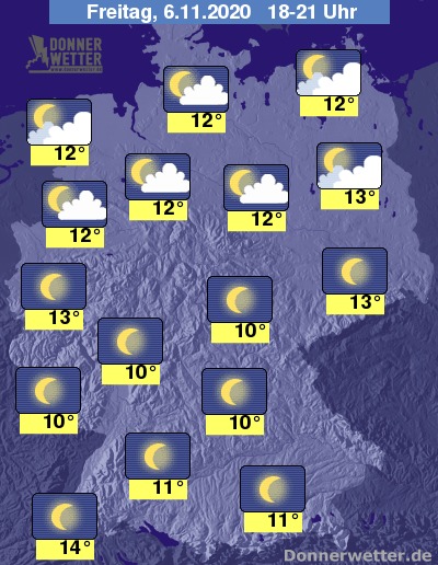 Bis Mitternacht lösen sich die meisten Wolken auch im Norden auf, sonst leuchten verbreitet Mond und Sterne.
