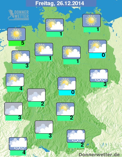 Am Freitag gibt es besonders in der Südhälfte des Landes noch einige Schneefälle, die sich jedoch am Nachmittag mehr und mehr auf den Süden Deutschlands, und hierbei aufs Alpenvorland zurückziehen, dafür fällt hier auch teils langanhaltend Schnee. Vor allem im Norden, aber auch vielerorts in der breiten Mitte der Republik zeigt sich der Tag nicht selten freundlich mit zum Teil sogar sonnigem Wetter, dazu bleibt es hier weitgehend trocken. Die Temperatur steigt auf 0 Grad in Neubrandenburg und bis 5 Grad an der Nordsee.