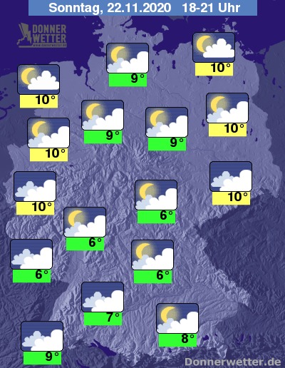 In der Nacht zum Montag bleibt es trüb oder stark bewölkt, Auflockerungen bleiben eher selten. Es bleibt überwiegend trocken bei Tiefstwerten von 8 Grad in der Kölner Bucht und bis 3 Grad im Münchner Umland.