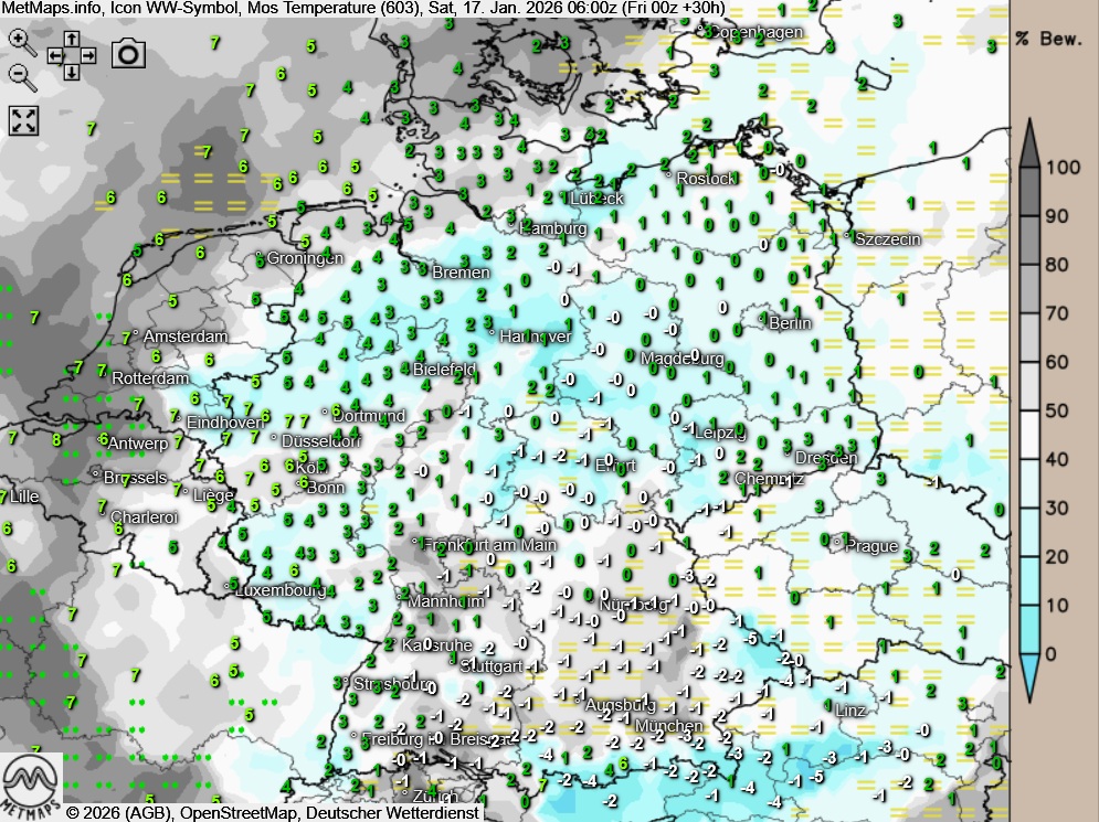 Die Temperaturen erreichen Höchstwerte um 3 Grad im Nordosten und um 9 Grad im Rheinland.