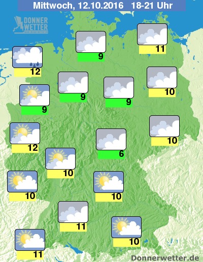 Am Abend im Nordosten weiterhin bedeckt. Im Westen klart es ein wenig auf und die Sonne kann ab und zu durch die Wolken kommen. Im Süden wechseln sich Sonne und Wolken weiterhin ab. An der Nordseeküste sind Schauer möglich, ansonsten bleibt es weiterhin trocken.