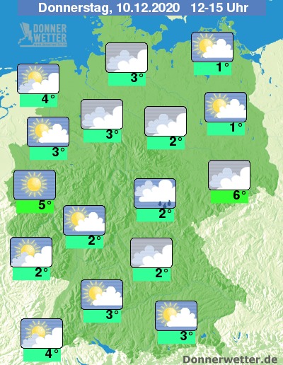 Am frühen Nachmittag fällt hauptsächlich über Thüringen noch etwas Regen oder Sprühregen, sonst bleibt es teilweise grau in grau, teilweise lässt sich auch mal die Sonne blicken, im Westen auch mal für längere Zeit.