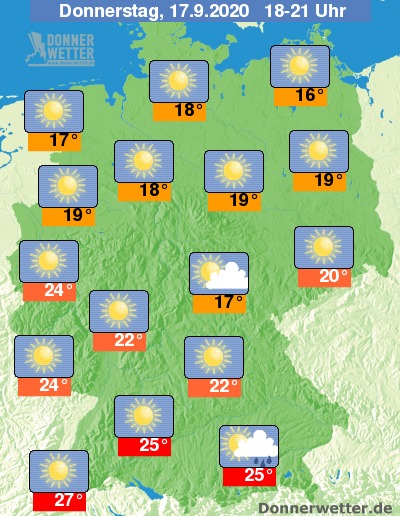 Am frühen Abend liegen die Temperaturen noch zwischen 16 Grad an der Ostsee und spätsommerlichen 27 Grad im Breisgau.