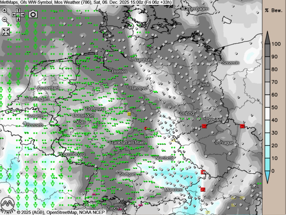Die Wetter- und Temperaturkarte für Samstagnachmittag (15:00 Uhr) nach GFS: