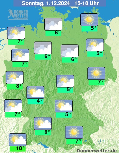 Am Sonntagnachmittag zeigt sich der Himmel über der Nord- und Westhälfte wechselnd oder stark bewölkt, es bleibt aber meist trocken. In den übrigen Landesteilen ist es teils heiter, teils sonnig und es bleibt niederschlagsfrei.