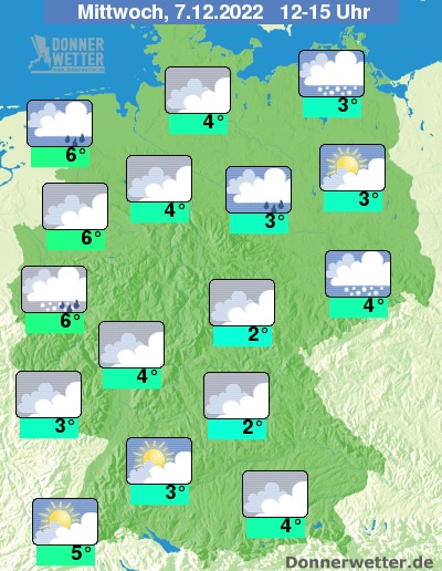 Die Temperaturen erreichen am Nachmittag Höchstwerte um 2 Grad in Erfurt und 6 Grad am Niederrhein.