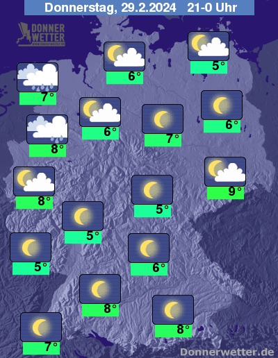 In der Nacht auf Freitag fällt im Nordwesten noch zeitweise Regen, sonst zeigt sich der Himmel teils wolkig oder nur gering bewölkt, teils sternenklar.