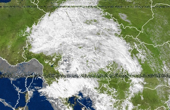 Auf dem aktuellen Satellitenbild von Europa ist deutlich das Tief "Dagmar" mit ihren dichten Wolken zu erkennen, es sorgt in der Nacht vor allem im Osten, aber auch noch im Süden Deutschlands für viele Wolken und Regen.