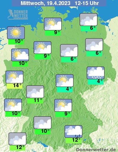 Heute Nachmittag zeigt sich vor allem im Westen und Nordwesten verbreitet die Sonne. Dichte Wolken halten sich insbesondere über Sachsen und Bayern, dabei bilden sich gebietsweise Schauer, zum Teil mit Schnee oder Schneeregen. Im übrigen Land ist es meist stark, teils aufgelockert bewölkt und weitgehend trocken. Die Temperatur liegt bei 4 Grad in Dresden und 14 Grad in Köln.