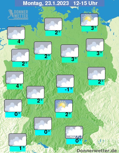 Heute Nachmittag halten sich überwiegend dichte Wolken, im Nordosten lockert es auch häufiger auf, sonst zeigen sich nur selten Auflockerungen. Im Alpenvorland fällt gelegentlich etwas Schnee, sonst bleibt es trocken bei 0 Grad im Berchtesgadener Land und 4 Grad am Niederrhein.