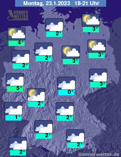 Heute Abend kann es vor allem im Norden und Osten vielerorts aufklaren, sonst bleibt es aber größtenteils stark bis dicht bewölkt, dazu bleibt es aber auch weitgehend trocken. Die Temperatur liegt bei 0 Grad im Grabfeld und bis 5 Grad in der Kölner Bucht.