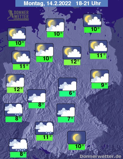 Heute Abend fällt über dem Südwesten des Landes unter dichten Wolken gebietsweise Regen, sonst ist es über der Nordhälfte verbreitet locker bis aufgelockert bewölkt, über dem Südosten sogar oft sternenklar, dazu bleibt es trocken. Im übrigen Land ist die Wolkendecke meist verschlossen, aber auch dabei bleibt es trocken. Die Temperatur liegt bei 6 Grad in Jena und bis 12 Grad in Köln.