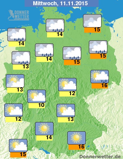 Die Temperaturen erreichen am Mittwoch Höchstwerte um 10 Grad C im Odenwald und um 16 Grad C in Dresden.