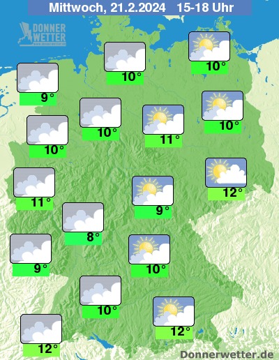 In den späteren Abendstunden ist der Himmel stark bewölkt oder es ist bedeckt, im Westen und Nordwesten setzt dabei Regen ein, der in der Nacht auch den Süden und Südosten erreicht. Von Westen und Südwesten frischt der Wind dabei zunehmend böig auf, in den Höhenlagen sind auch Sturm- oder schwere Sturmböen möglich.