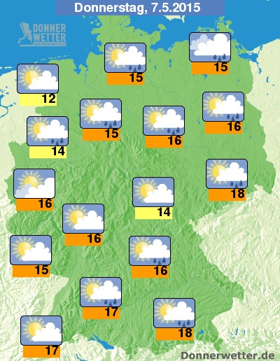 Am Donnerstag zeigen sich besonders im Süden und Osten oft heitere Abschnitte, hier bleibt es auch zumeist trocken. Vor allem im Norden, aber auch im Westen zieht jedoch meist wechselnde oder starke Bewölkung durch, dabei können sich vornehmlich am Nachmittag einzelne Schauer entwickeln. Die Temperatur steigt auf 12 Grad an der Nordsee und bis 18 Grad in München.