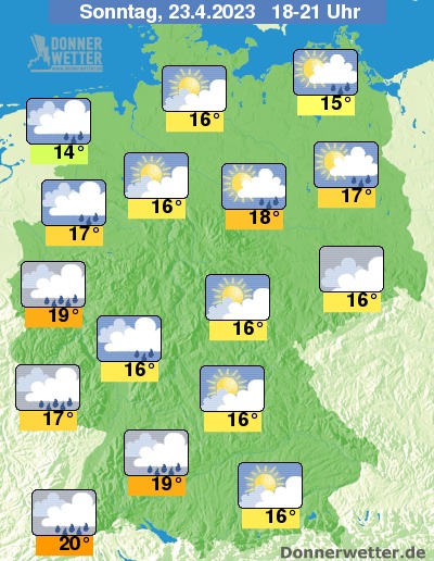 Heute Abend ziehen vom Nordwesten, über den Westen bis in den Südwesten dichte Wolken herein, die hier verbreitet Schauer mit sich bringen. Im Südwesten sind zudem Gewitter möglich. Im übrigen Land ist es oft stark, teils aufgelockert bewölkt und es bilden sich nur örtliche Schauer.