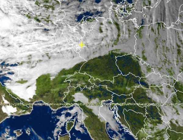 Deutlich sichtbar ist der sonnige Süden im Satellitenbild: