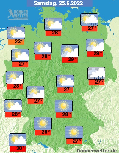 Heute ist es häufig heiter bis sonnig, jedoch ziehen teilweise auch mehr Wolken durch, dabei besteht jedoch nur ein leichtes Schauer- und Gewitterrisiko. Die Temperatur steigt auf 23 Grad an der Nordsee und bis 29 Grad in Berlin.