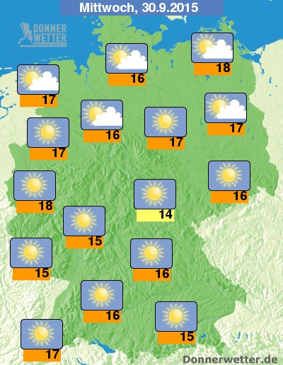 Heute scheint die Sonne wiederum von einem verbreitet wolkenlosen Himmel und es ziehen nur hier und da mal harmlose Wolken durch. Im Norden ziehen hingegen auch gebietsweise einige Wolken durch, dazwischen scheint aber häufig die Sonne. Es bleibt überall trocken, dabei steigen die Temperaturen auf 14 Grad im Grabfeld und bis 18 Grad in Neubrandenburg.