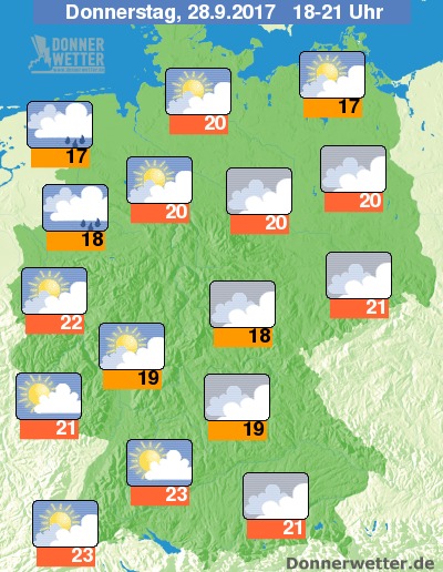Bis zum Abend überquert das Wokenband Deutschland weiter ostwärts, sodass die Sonne nun auch im Nordosten immer häufiger nachgeben muss. Letzte Tropfen fallen zeitgleich noch in Nordseenähe, während es vor allem im Südwesten langsam schon wieder freundlicher wird und auch die Sonne zum Vorschein kommt.