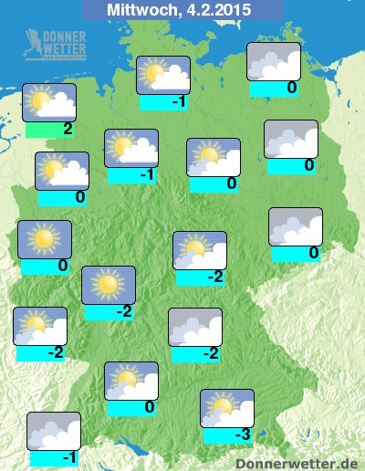 Heute kann sich in vielen Landesteilen wieder häufiger die Sonne durchsetzen. So zeigt sie sich besonders im Westen oft über einen langen Zeitraum, aber auch im Nordwesten, Norden und gebietsweise im Süden ist mit Sonnenschein zu rechnen. Meist dicht bleibt die Bewölkung dagegen im Osten, Nordosten und auch im Südwesten Deutschlands, hier kann gelegentlich etwas Schnee fallen, sonst bleibt es aber weitgehend trocken. Die Temperatur steigt auf -3 Grad im Allgäu und bis 2 Grad an der niederländischen Grenze.