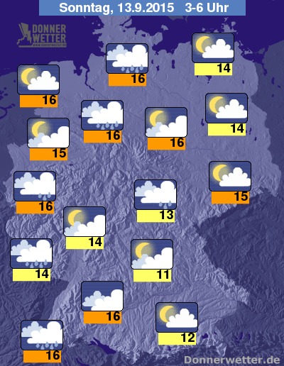 In der kommenden Nacht werden auch die Wolken über der Osthälfte des Landes immer zahlreicher und dichter, es bleibt hier dennoch bis zum Morgen überwiegend trocken. Weiter nach Westen hin zieht zumeist dichte Bewölkung durch und nur hier und da ist es auch mal aufgelockert bewölkt, dazu kann immer wieder und teils auch langanhaltender Regen fallen. Die Temperatur sinkt auf 16 Grad in Hannover und bis 11 Grad in Franken.