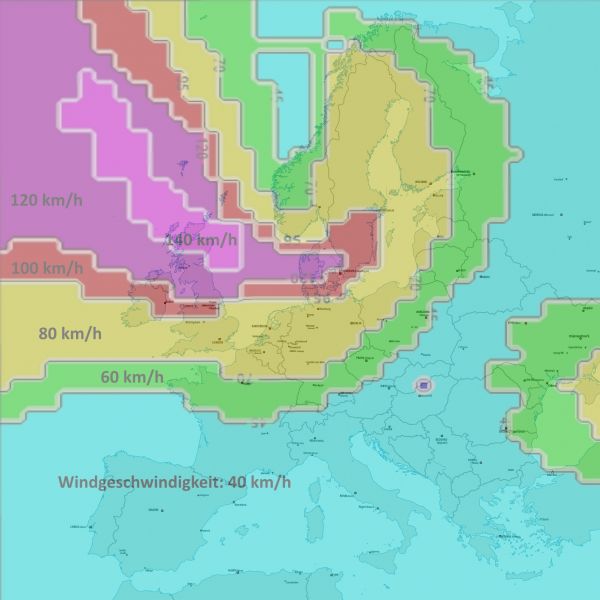 In der nachfolgenden Grafik sehen Sie die europaweit möglichen Windspitzen für den Zeitraum 13.11.2015 (18 Uhr) bis 15.11.2015 (0 Uhr):