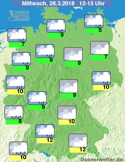 Heute Nachmittag bleibt es über der Bundesrepublik bedeckt, dabei fällt vor allem über der Westhälfte wiederholt Regen, weiter nach Osten hin ist es noch meist trocken. Die Temperatur liegt bei 5 bis 12 Grad.