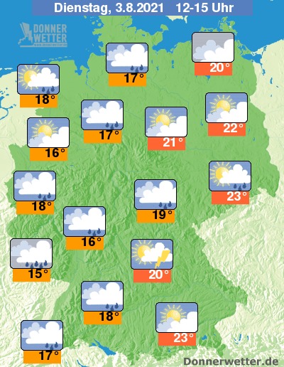 Heute Abend ziehen weiterhin oft viele und teils dichte Wolken durch, dabei sind weitere Schauer und örtliche Gewitter zu erwarten. Im Süden bilden sich noch bis spät in den Abend Schauer, während die Schauer und örtlichen Gewitter sonst im weiteren Verlauf immer weiter abklingen. Die Temperatur liegt bei 18 Grad am Westerwald und bis 23 Grad in Oberbayern.