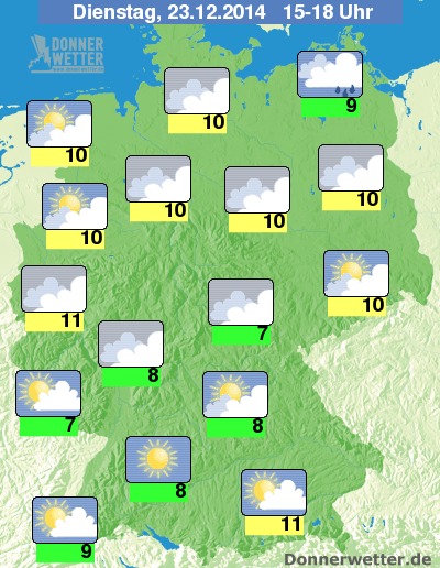 Heute Nachmittag kann sich südlich der Donau, nach örtlicher Nebelauflösung, häufig die Sonne zeigen, dazu bleibt es hier tagsüber auch trocken. In den nördlicheren Landesteilen bleibt es dagegen weitgehend bedeckt und nur hier und da traut sich die Sonne einmal hervor. Im Norden fällt auch zeitweise Regen, sonst bleibt es zumeist trocken. Von der breiten Mitte bis ins nördliche Deutschland weht weiterhin ein frischer und teils starker, an der See und in Böen auch ein teils stürmischer Wind. Die Temperatur liegt bei 7 Grad im Grabfeld und bis 11 Grad in Köln.