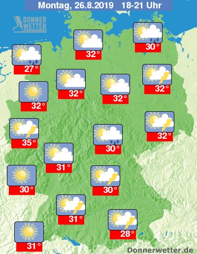 Die Temperaturen erreichen am frühen Abend Werte um 27 bis 35 Grad.