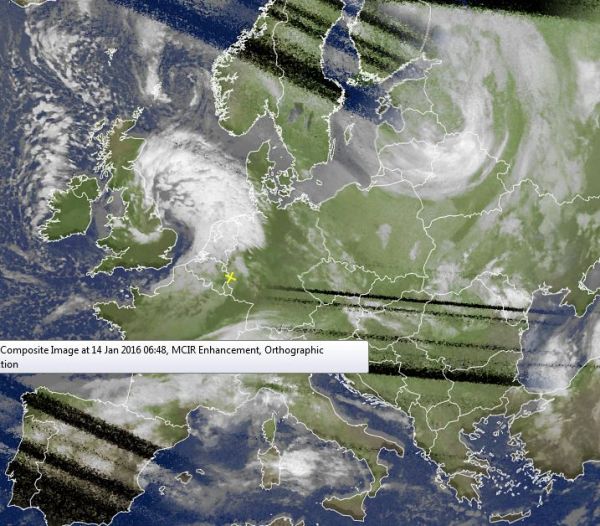 Auf dem Satellitenfoto von heute Morgen erkennen wir Tief "Emma" mit Kern östlich von England. Sein Ausläufer bringt besonders über Benelux, aber auch über Teile des Ostens der Britischen Inseln und über Nordwestdeutschland oft sehr nasskaltes und vielfach stürmisches Wetter. In der Nacht zieht das Tief über Benelux und weiter in den Westen Deutschland und bringt dem Bundesgebiet verbreitet nasskaltes Winterwetter mit Schnee und Glätte.