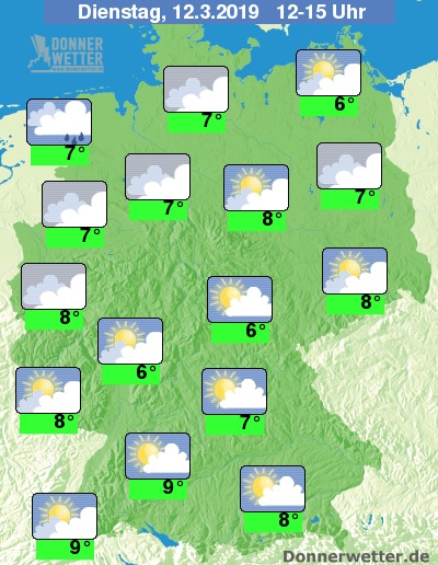 Die Temperaturen erreichen im Laufe des Nachmittags Werte zwischen 6 Grad in Mecklenburg-Vorpommern und 10 Grad im Südwesten.