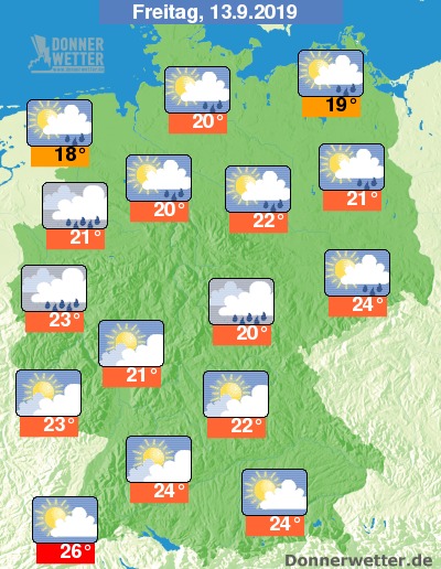 Während im Süden unseres Landes Hochdruckeinfluss vorherrscht, wird der Norden und die Mitte von einer Kaltfront überquert. Am Wochenende wandert ein Hoch von den Britischen Inseln, über Mitteleuropa hinweg nach Osteuropa und sorgt bundesweit für freundliches und trockenes Spätsommerwetter.
