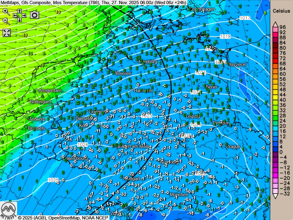 Die Temperaturen erreichen heute Höchstwerte um um 1 bis 8 Grad.