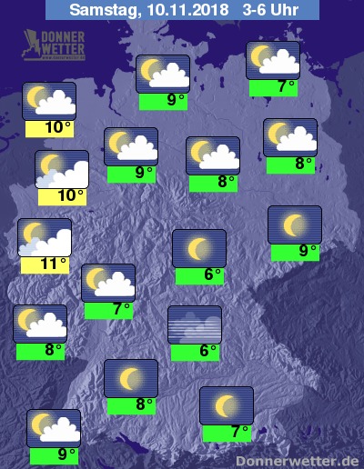 In der Nacht zeigt sich der Himmel zunächst überwiegend locker oder aufgelockert bewölkt, im Norden und Osten bleibt es regional auch bedeckt. Im weiteren Verlauf lockern die Wolken weiter auf, in der Südosthälfte zeigen sich auch häufig die Sterne. Schauer sind in der Nacht nicht zu erwarten.