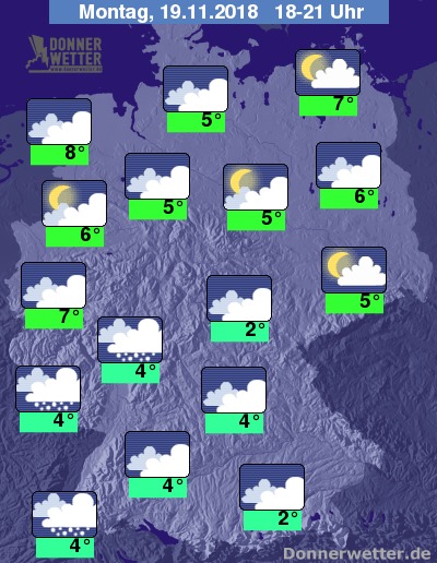In den Abendstunden zeigt sich der Himmel über weiten Landesteilen zunächst noch stark bewölkt oder bedeckt, mit einzelnen Schneeregen- oder Schneeschauern ist allerdings nur noch regional im Südwesten Deutschlands zu rechnen. Im weiteren Verlauf klingen die Schauer hier zwar immer mehr ab, der Himmel bleibt aber meist stark bewölkt. In den übrigen Landesteilen lockern die Wolken dagegen zunehmend auf.
