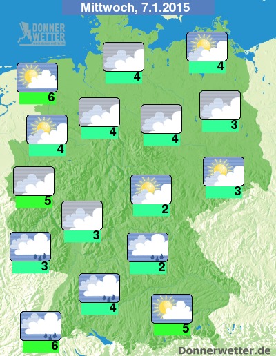 Heute bleibt es überwiegend stark bewölkt, dabei fällt im Süden Deutschlands zeitweise Regen, Schneeregen oder Schnee, dazu kann es verbreitet glatt auf den Straßen werden. Auflockerungen sind am ehesten am Alpenrand, sowie zwischen Thüringen und Sachen, und auch gebietsweise im Norden möglich, hier bleibt es weitgehend trocken. Die Temperatur steigt auf 2 Grad im Coburger Land und bis 6 Grad im Breisgau.