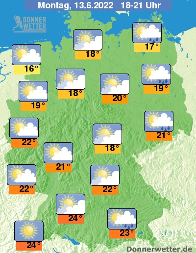 Heute Abend klingen letzte Schauer in den östlichen und südöstlichen Landesteilen nach und nach ab und auch hier wird es dann, wie schon zuvor in der übrigen Bundesrepublik, weitgehend heiter bis sonnig und trocken. Die Temperatur liegt bei 16 Grad in Wilhelmshaven und bis 24 Grad in Stuttgart.