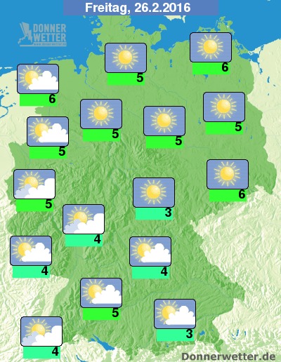 Heute zeigt sich vor allem über dem Norden und Osten verbreitet die Sonne, dabei ziehen nur gebietsweise lockere Wolkenfelder durch. Weiter nach Südwesten hin ist es wechselnd, zum Teil auch stark bewölkt. Es bleibt landesweit trocken bei Temperaturen von 3 Grad im Vogtland und bis 6 Grad entlang der Ems.