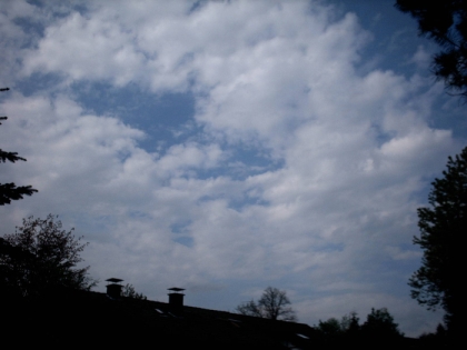 Zu sehen sind Cumuluswolken - diese Wolken sind in einer Höhe von 1500 m. Sie reichen nicht sehr hoch, so dass die Wahrscheinlichkeit für Schauer und Gewitter gering ist.