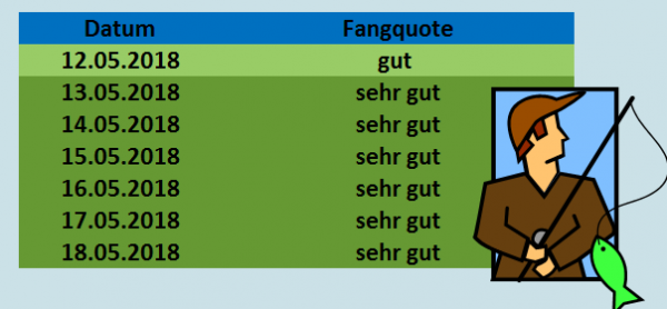 Die mäßig-warmen Temperaturen sorgen zusammen mit der häufig mäßigen Bewölkung und einzelnen Schauern für optimale Rahmenbedingungen an den Gewässern.