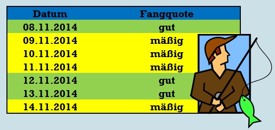 Eine erhöhte Fressaktivität, vor allem von Raubfischen, könnte nach der gestrigen Vollmondnacht teilweise auch noch am morgigen Samstag beobachtet werden.