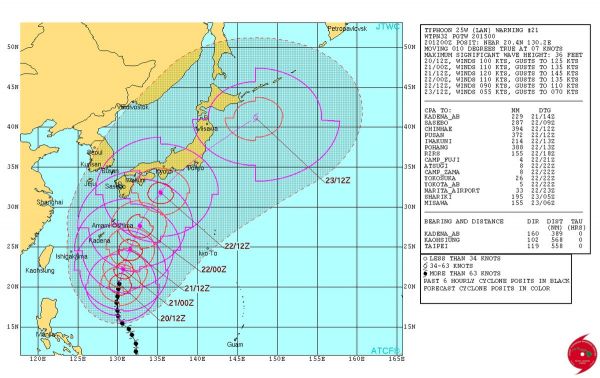 Typhoon Lan ist auf dem Weg nach Japan. Er wird am Montag/Dienstag das Land erreichen. Reisende nach Japan sollten sich unbedingt informieren. Starker Regen, Erdrutsche und Sturm werden erwartet. Auch Großraum Tokio ab Montagabend betroffen.