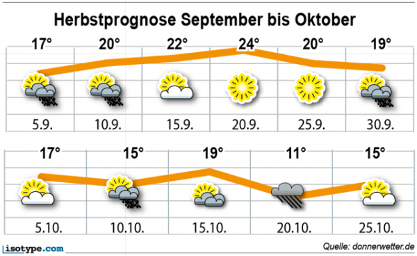 Zudem sind über weite Teile des Septembers Temperaturen um die 20-Grad-Marke zu erwarten.