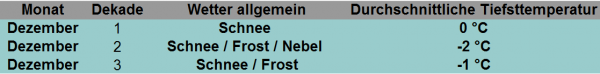 Die Detailaussichten für den Dezember:
