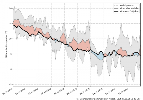 Die nächsten Wochen werden warm - da berechnet derzeit das aktuelle Langfristmodell für den Westen. Vor allem in der zweiten Oktoberhälfte sind allerdings immer wieder Schauer zu erwarten und die Sonne ist seltener mit von der Partie.