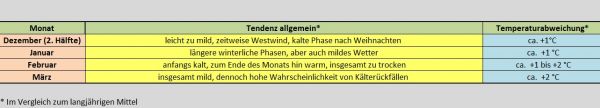 Und auch im neuen Jahr (bis einschließlich März) bewegen sich die monatlichen Durchschnittstemperaturen nach jetzigen Berechnungen allesamt im leicht zu milden Bereich. Vor allem der Februar deutet sich derzeit als sehr mild an.