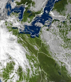 Satellitenbild: Warmfront erreicht Mitteleuropa